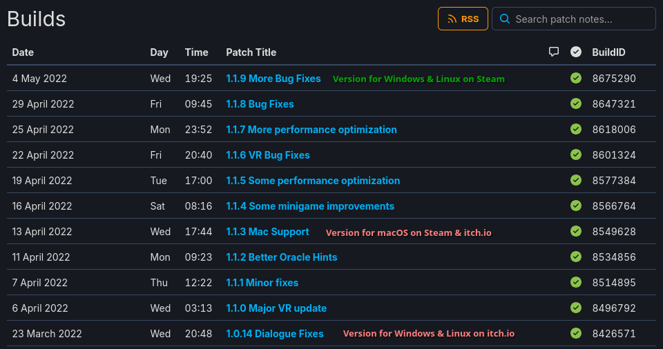 Looks like the Windows & Linux downloads on itch.io are outdated compared to on Steam: